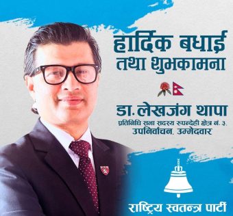 रुपन्देही–३ को प्रतिनिधि सभा उपनिर्वाचनका लागि राष्ट्रिय स्वतन्त्र पार्टी (रास्वपा)ले वरिष्ठ न्युरोलोजिस्ट डा. लेखजंग थापालाई आधिकारिक उम्मेदवार बनाएको छ। पार्टीको प्राइमरी निर्वाचनमा सबैभन्दा बढी मत पाएका थापालाई कात्तिक १७ गते हुने उपनिर्वाचनमा प्रतिस्पर्धी बनाउन निर्णय गरिएको हो। डा. थापा चिकित्सा क्षेत्रमा स्थापित नाम हुन्। उनी डीएमसी चितवनको न्युरोलोजी विभाग प्रमुख र नेसनल न्युरो सेन्टर, महाराजगञ्ज, […]
