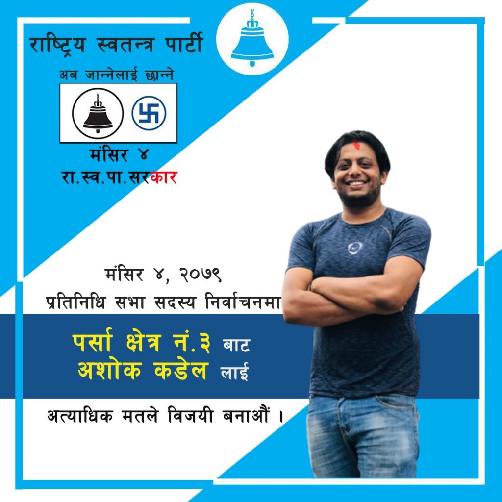 राष्ट्रिय स्वतन्त्र पार्टी पर्सा क्षेत्र नम्बर ३ को प्रतिनिधि सभा को सदस्य उम्मेदवार अशोक कडेल प्रति उक्त क्षेत्रमा जनलहर बढ्दै गएको देखिएको छ ।
