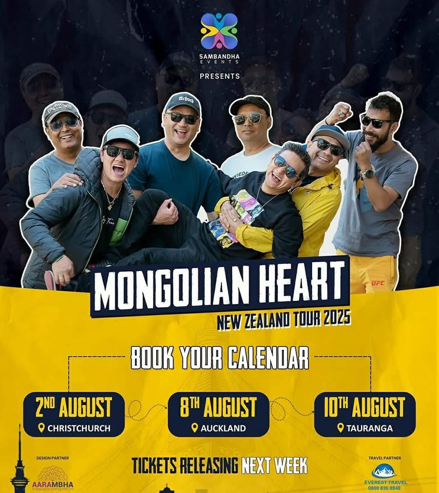 Continue Readingसम्बन्ध इभेन्ट्सको प्रस्तुति — मङ्गोलियन हर्ट को न्यूजिल्याण्ड टुर २०२५: तीन शहरमा ग्रान्ड लाइभ कन्सर्टको तयारी